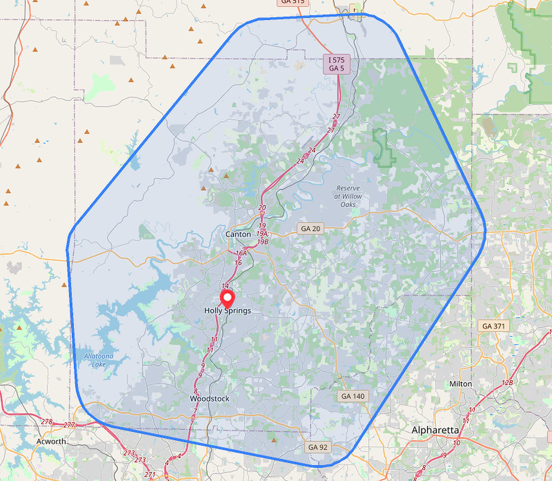 Holly Springs, and all of Cherokee and Bartow counties, GA (+100 Miles!)